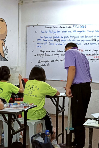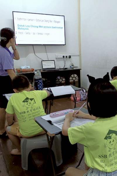 督促孩子们完成每日功课;老师审查;完成每日的听写 / ejaan / spelling